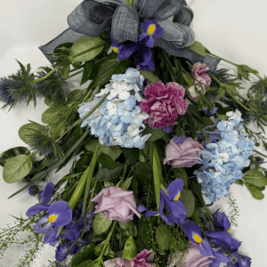 This month’s tutorial shows you how to create a soft, eco-friendly funeral sheaf in a monochromatic palette of lilacs and light blues. Ideal as a farewell tribute, gift bouquet, or pew end for weddings, this front-facing design is full of versatility, seasonal beauty, and thoughtful details — all without floral foam.