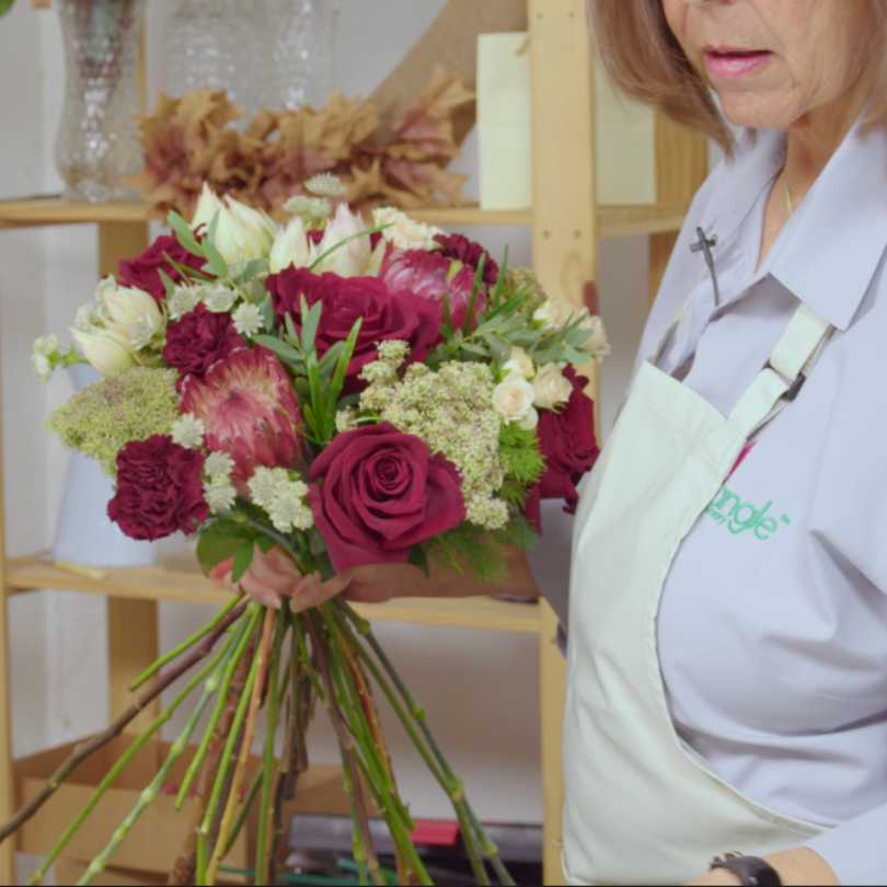 Learn how to create a beautifully balanced domed hand-tied arrangement using classic carnations. Ideal for corporate or hospitality spaces, this simple yet striking design will help you build confidence with shape and structure.