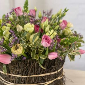 Learn how to create an eco-friendly funeral posy with the use of chicken wire mechanics. This design incorporates a beautiful combination of spring flowers and materials suited to different applications including a funeral tribute, wedding centrepiece and gift design.