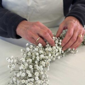 17 mins: Learn techniques involved in creating a hand tied bouquet, a jam jar and garland with the ever-popular whimsical flower, Gypsophila!