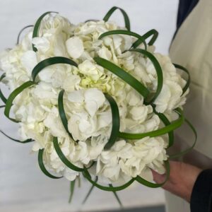 11 mins: Learn the steps involved in creating a bridal bouquet with Colombian hydrangea and grass, along with how to finish the handle with ribbon and pearl headed pins.