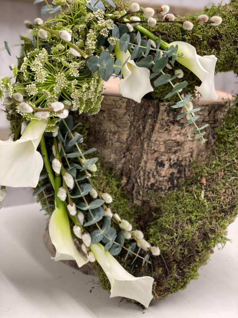 16 mins, 36 secs: Learn how to make an eco-friendly sympathy tribute using a moss base with minimalist design, using concepts of line and negative space.