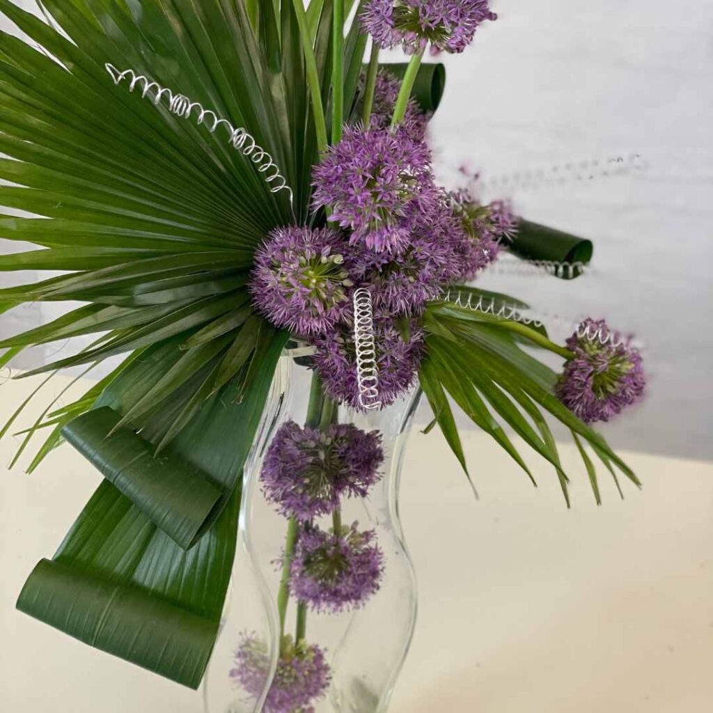 Words to describe this design include sophisticated and sleek. This design incorporates popular late Spring, Summer flowers to create an inverted contemporary corporate design. Ideal for hotel lobby, board room or event with plenty of air flow!